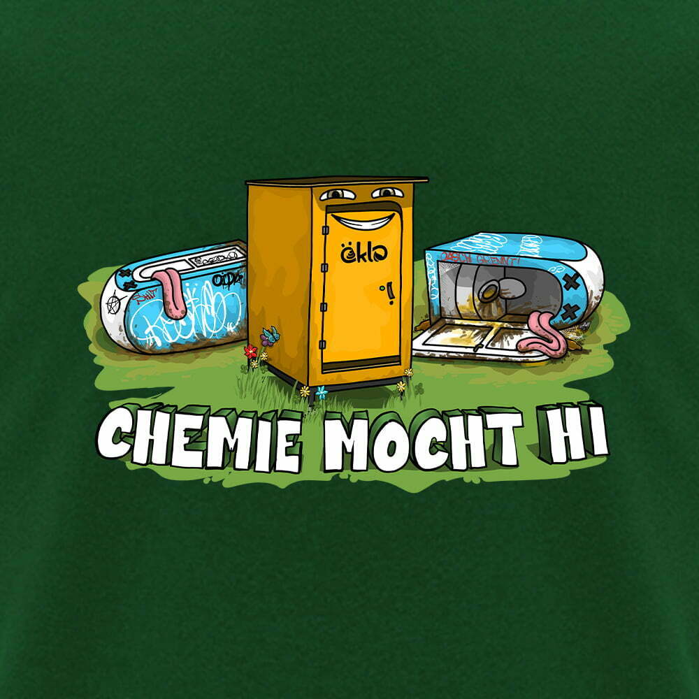 Mit diesem Slogan weisen wir auf zu viel Chemie in unserem Leben hin. Wir wollen weder Chemie in unseren Lebensmitteln noch in Kleidung und auch nicht beim Toilettengang. Hol Dir Dein T-Shirt und trage so etwas bei für weniger Chemie in der Welt.