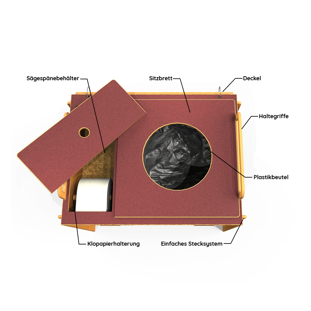 Unser Campingklo funktioniert durch einfache Steckmechanik. Es werden also weder Schrauben noch Nägel oder Kleber benötigt!