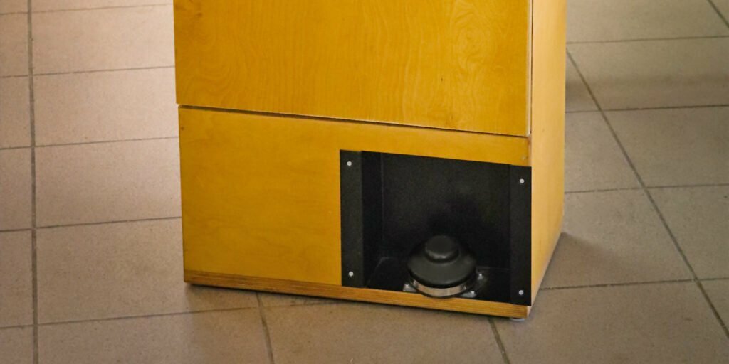 Durch eine Fußpumpe wird das Wasser durch den Wasserhahn befördert. So fließt auch wirklich nur Wasser, wenn gepumpt wird. Das Licht wird durch Solarzellen betrieben.