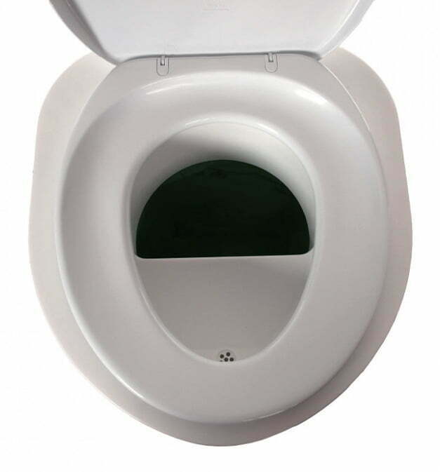 Eine Toilette, in der ein Trenngitter eingelegt ist.