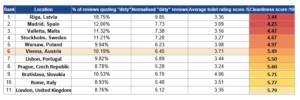 Und hey, ein Blick auf die Tabelle zeigt, dass es Städte gibt, in denen fast 20% der Bewertungen negative Wörter enthalten. Wien hält sich mit etwas über 10% noch ziemlich gut. Also, eigentlich ein Grund zur Freude, oder?
